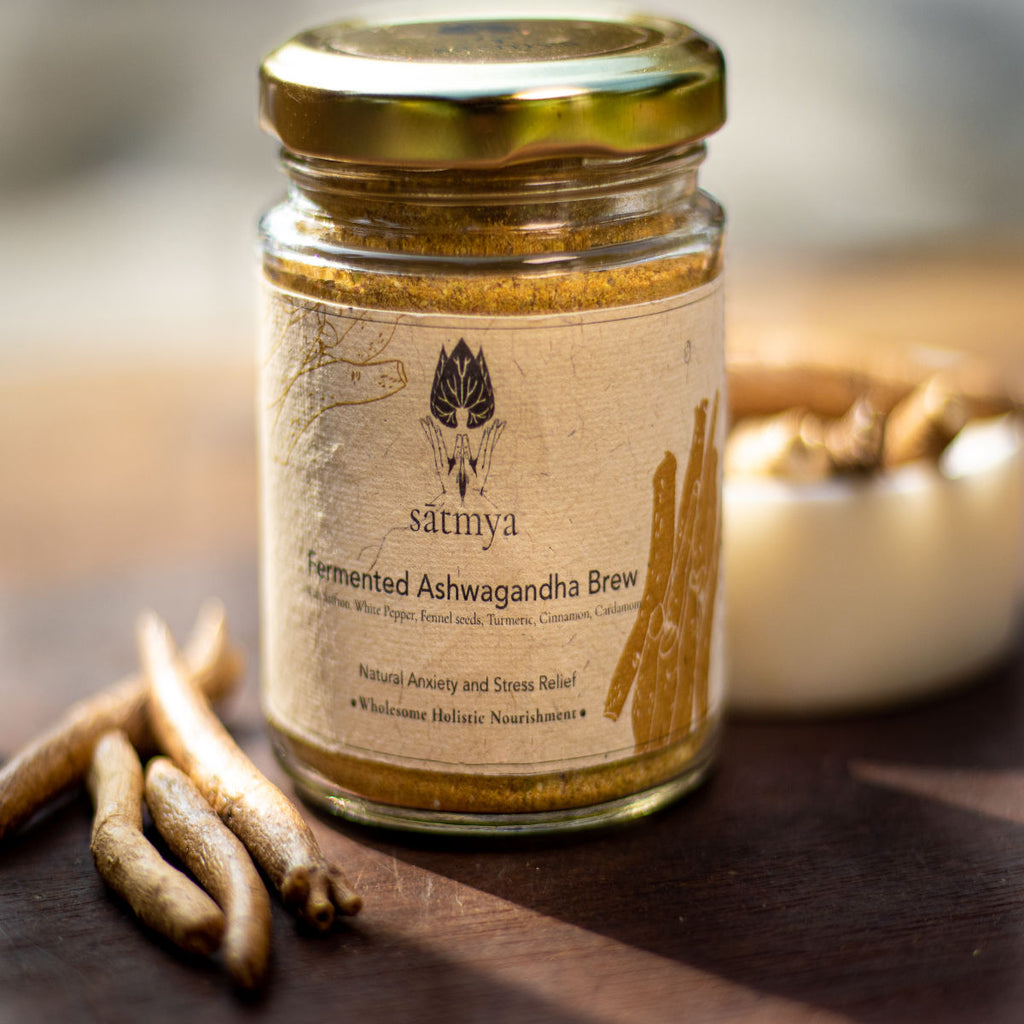 Ashwagandha derives from a sanskrit word "Ashwa" meaning horse and "Gandha" meaning tail. Fermentation is a time intensive process - completely done by hand, first cured in milk, sun dried and finally hand crushed which is what makes the Satmya fermented Ashwagandha absolutely potent, pure, undiluted and unadulterated!