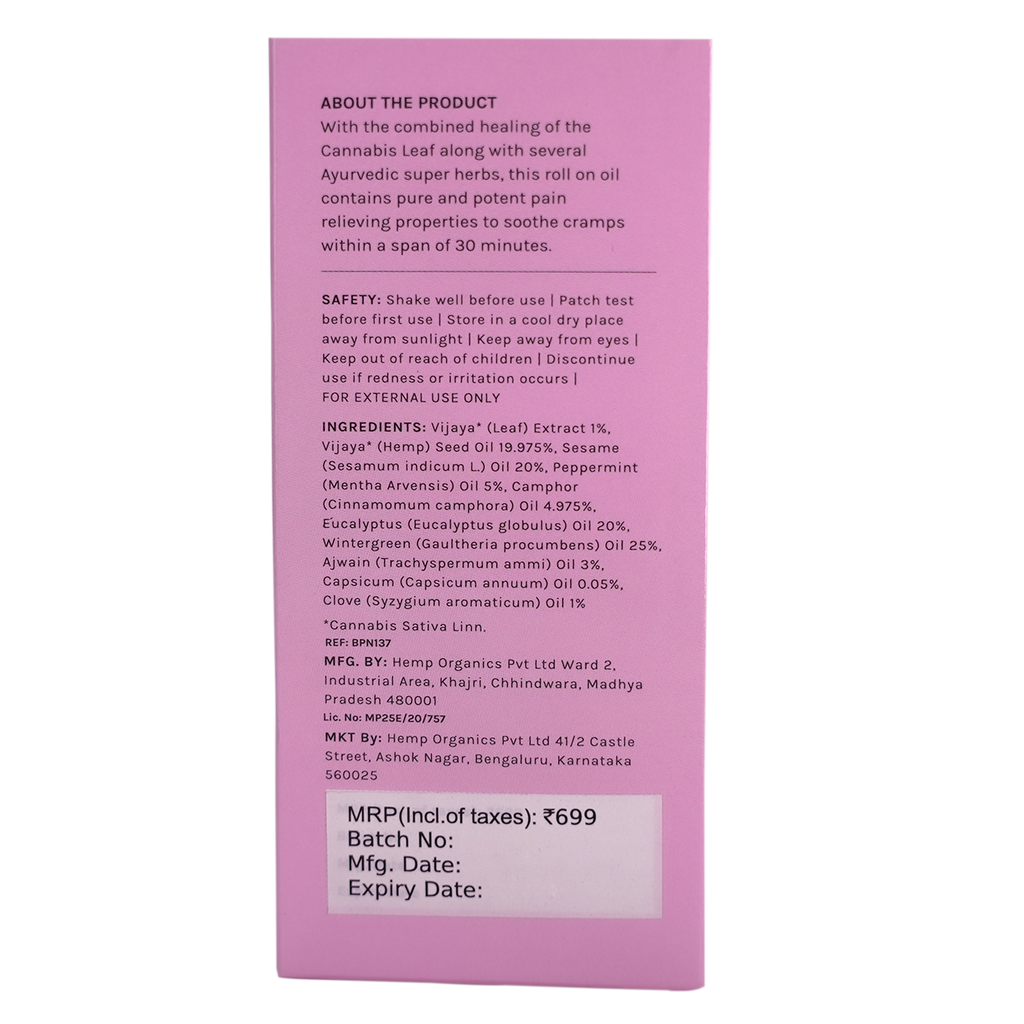 The Menstrual Pain Relief roll-on oil contains potent pain relieving properties to help soothe cramps, relieve pain and provide comfort within minutes post application.