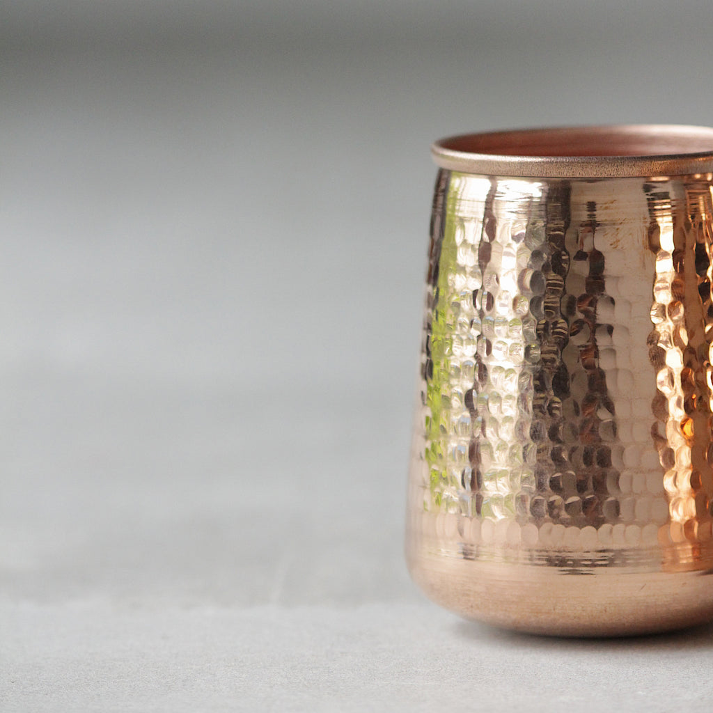 Inspired by the ebb and flow of water, these products venerate the traditional Indian practice of employing copper vessels to store and purify water. Harking back to simpler times, Watr brings back faint but fond memories of that sweet coppery goodness. Juxtaposing the unbroken, effortless glide of water with sharp, elegant geometry, this collection brings together a carafe, glasses, a mini-carafe and a storage vessel.