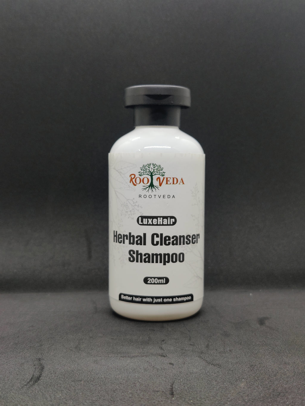 RootVeda Luxehair Herbal Cleanser Shampoo is a 100% Ayurvedic herbal shampoo designed to gently cleanse the scalp while nourishing hair naturally. Formulated with potent herbs such as Reetha, Methi, Shikakai, and Amla, this shampoo helps strengthen hair roots, reduce hair fall, and promote healthy, shiny, and thick hair.