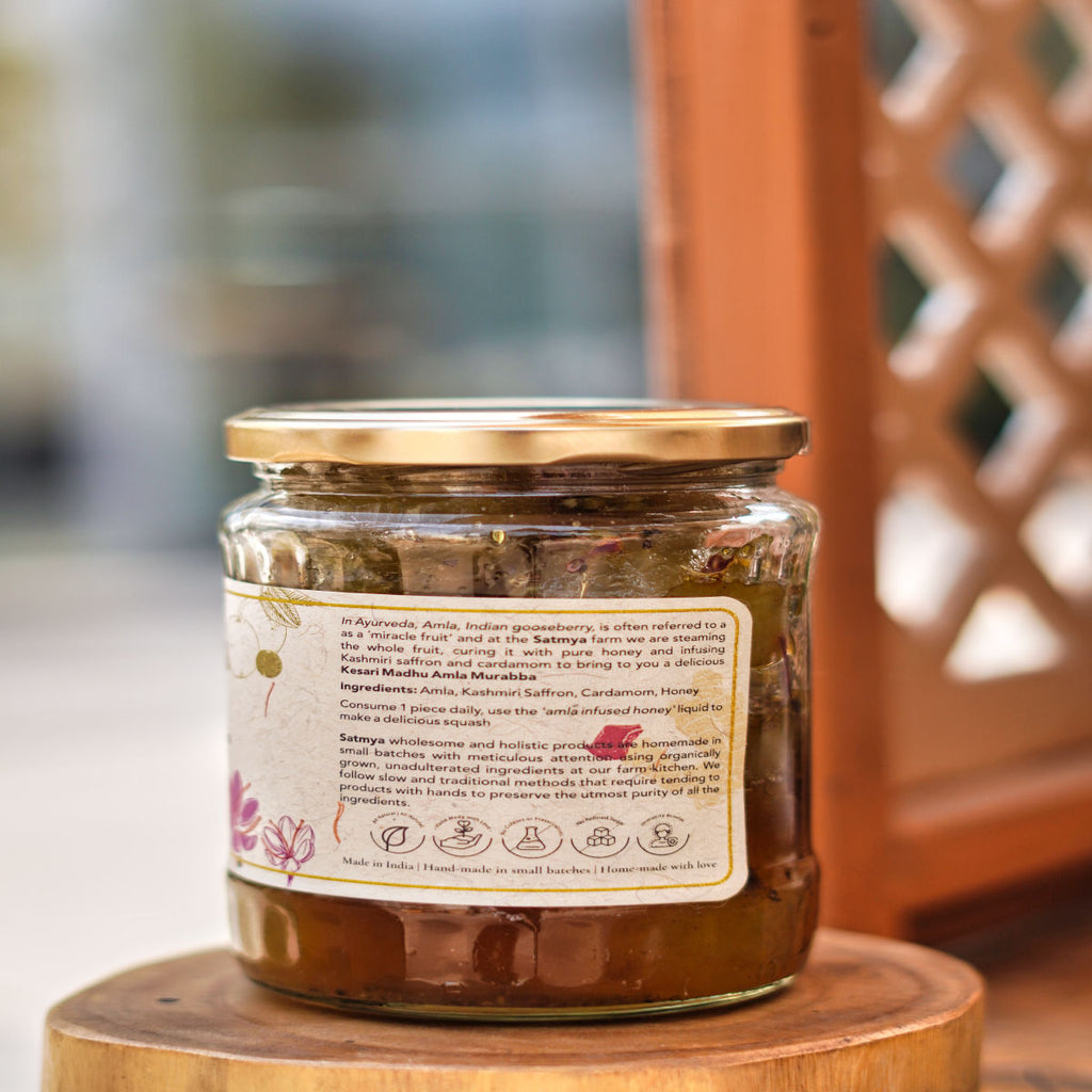 Satmya Kesari Madhu Amla Murabba is made with combining two superfoods - organically grown indian gooseberry and natural multi flora honey.