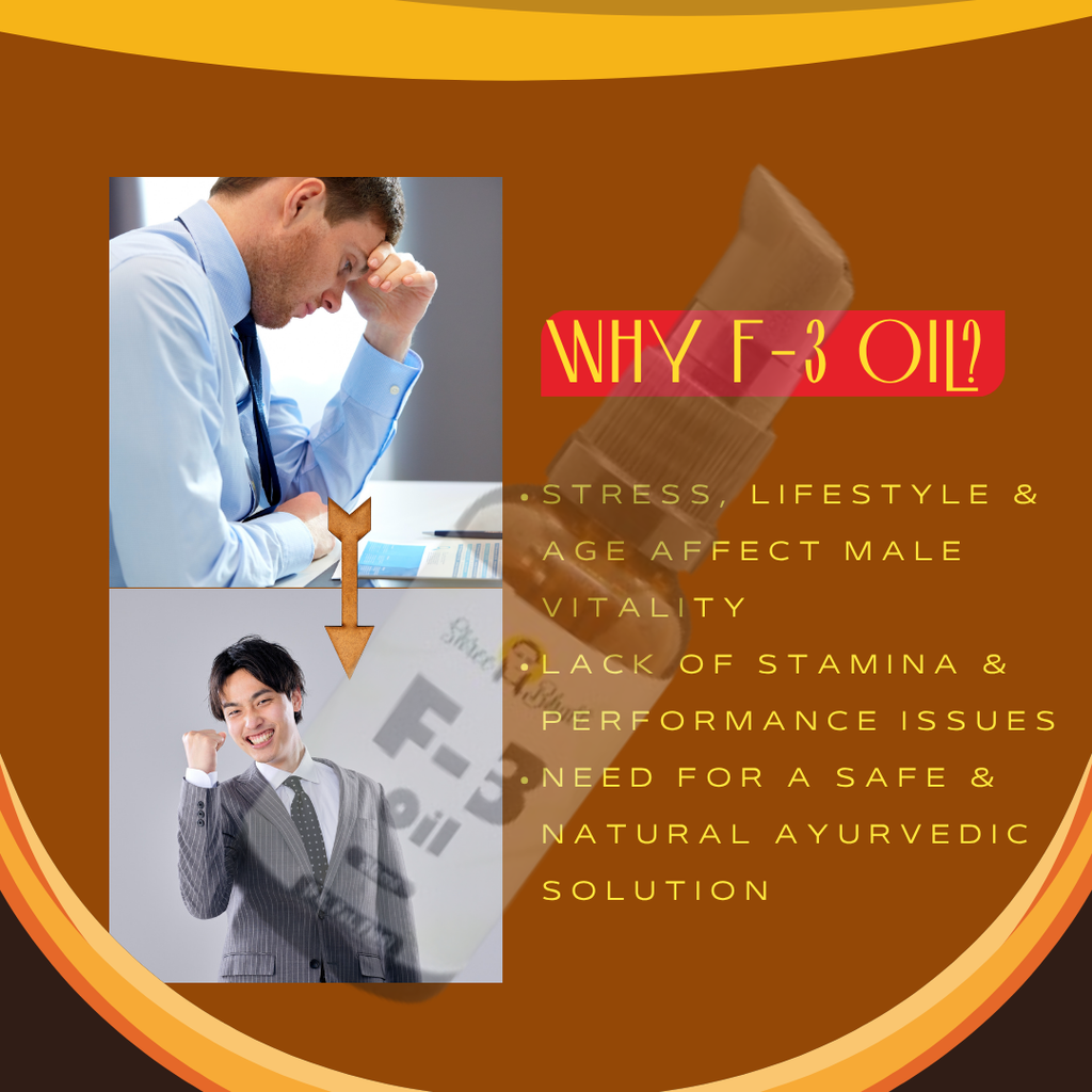 Regular use of F-3 Oil through gentle massage can help increase size, girth, and firmness, enhance stamina, and promote confidence. Its herbal ingredients work naturally without any chemicals, side effects, or artificial additives, supporting male reproductive and sexual health.