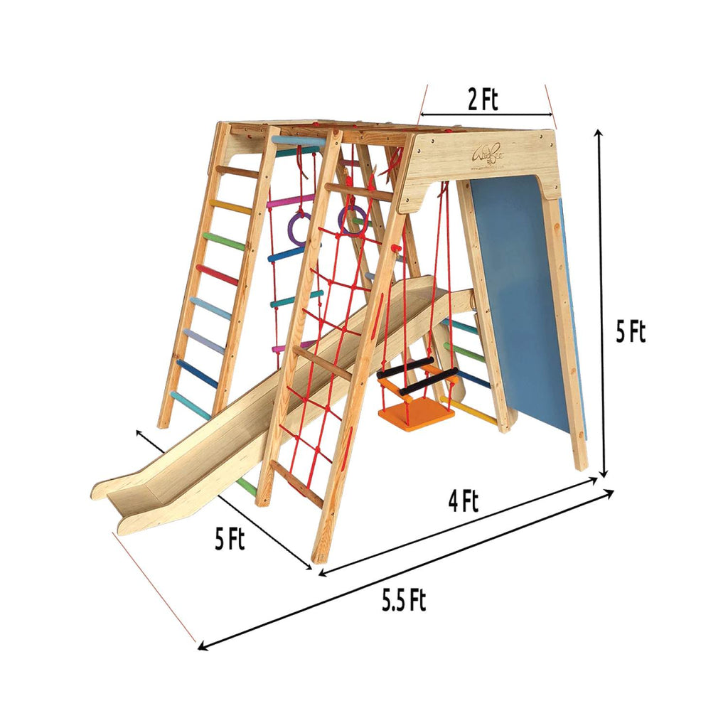 3. Cognitive Development: Exploring the different components of our modular jungle gym like moneky bar, rope ladder, swing, Gymnastic ring, slider, mountain climber, step ladder, wooden ladder, rope hrudle climber stimulates cognitive development in babies. They'll learn problem-solving skills and improve their spatial awareness while having an absolute blast!