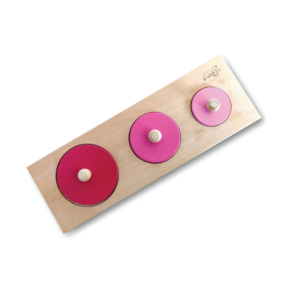 This simple seriation puzzle of concentric circles is an ideal learning tool for kids to understand sequential arranging of an object according to the size.It will help the baby to compare multiple object and see the differences between the arrangement.Mathematical concept of seriation is about learning order whilst the montessori concept also