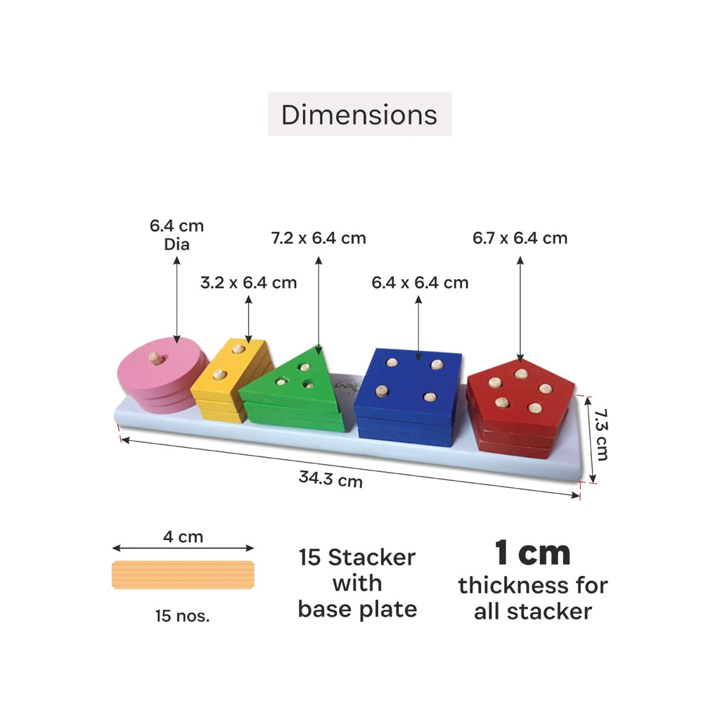 Learn Mathematics the fun way with our geometric angle stacker. One colour for one shape and sorting/stacking it helps the kid differentiate and appreciate different geometrical shapes. It helps in problem solving, improves concentration. The self correcting puzzle is made with non toxic beech wood and child safe paints