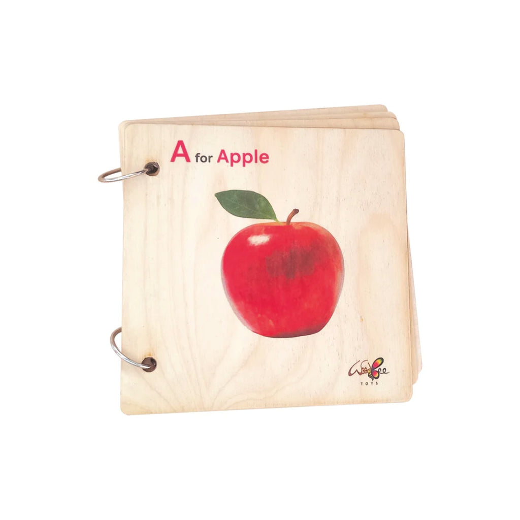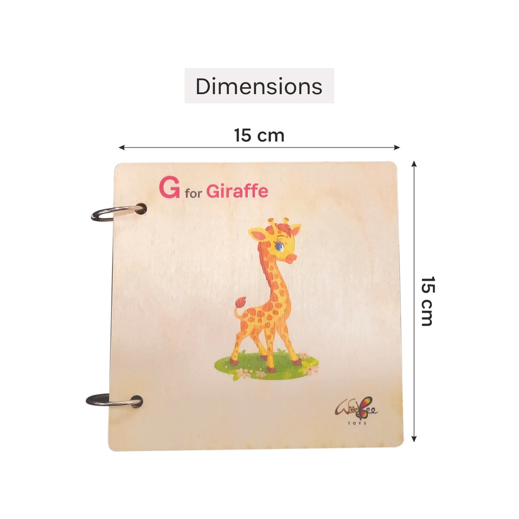 Woodbee toys bring you home infant's first book (A to H)A baby cannot read at 6 months but can listen to mommy or daddy or grans reading to them from a big board book. Infant's first book is designed in such a way thatWooden texture gives a sensory feel for the baby One picture for one page with three words or less that will be less distractive Introducing common things like first weaning food - an apple, animals which form their ceiling mobiles or flash cards A story teller can spin a story around each object represented in the pages.A baby will find it easier to flip the pages of wooden board.