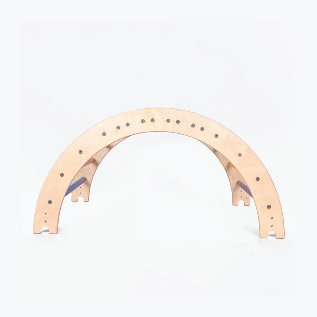 Pikler climbing arch is a climbing structure that comes as an add on to Pickler triangle and slider in combo. The Montessori climbing arch acts a bridge, a climbing structure, a rocker and as an open ended play option to multiple plays.